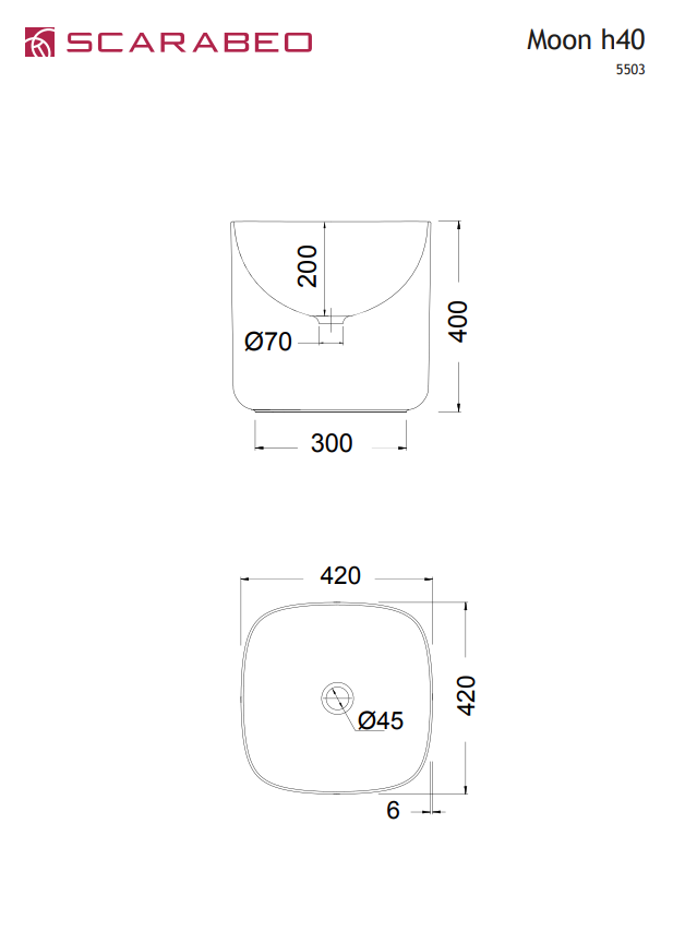 Νιπτήρας MOON 42×42 Y40 εκ. επιτραπέζιος, SCARABEO Ιταλίας