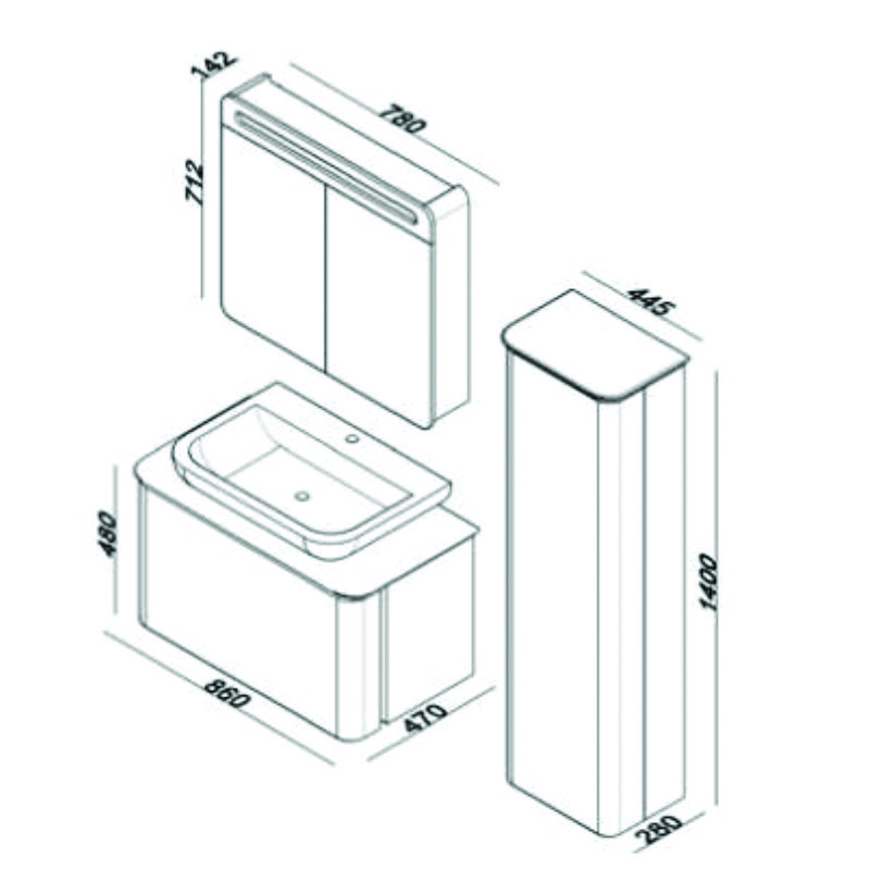 Σετ Έπιπλο Μπάνιου SENSIO 85CM με ενσωματωμένο LED φωτισμό