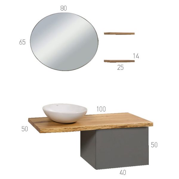 Πάγκος μασίφ δρυς συνδυασμένο με 1 συρτάρι-βαγονέτο soft-close μηχανισμό υψηλής πιότητος. (Συμπεριλαμβάνονται μεταλλικές γωνίες στήριξης).