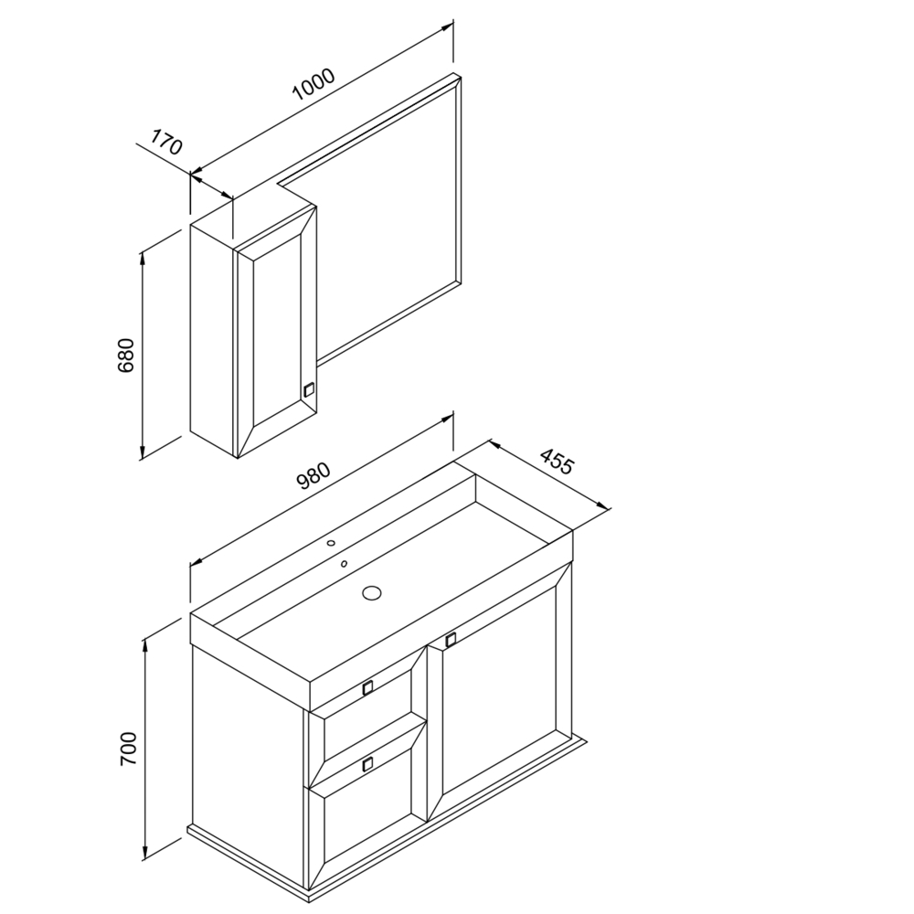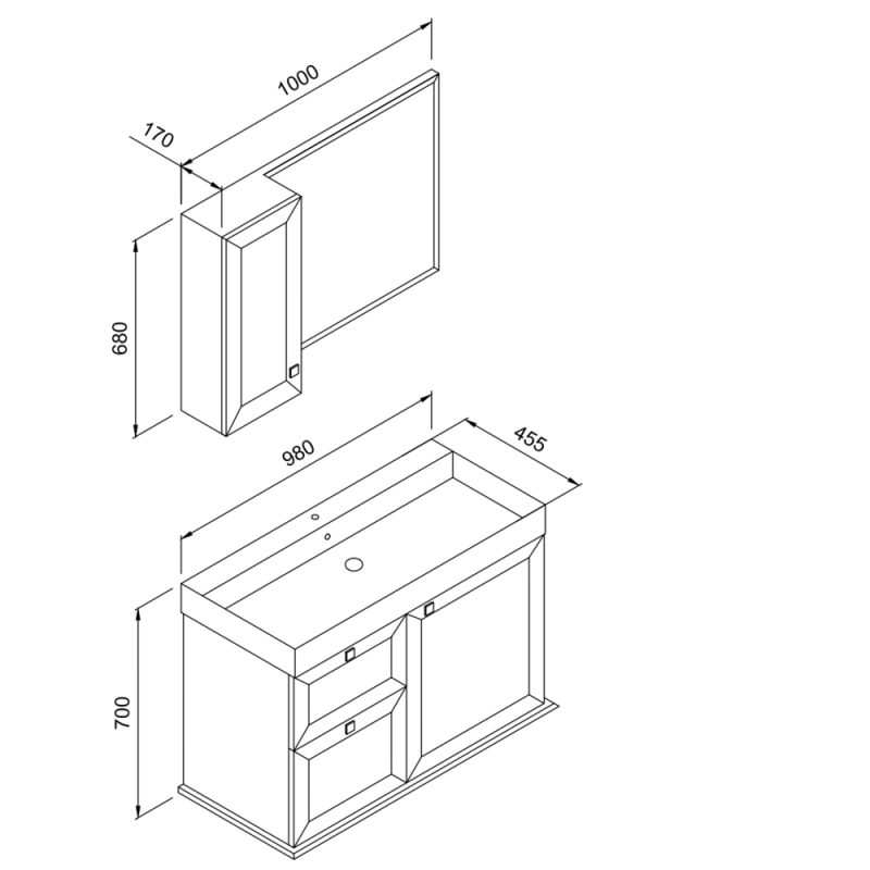 - Καθρέφτης τετράγωνος με ένα ντουλάπι στο πλάι από mdf με ματ λευκή λάκα.