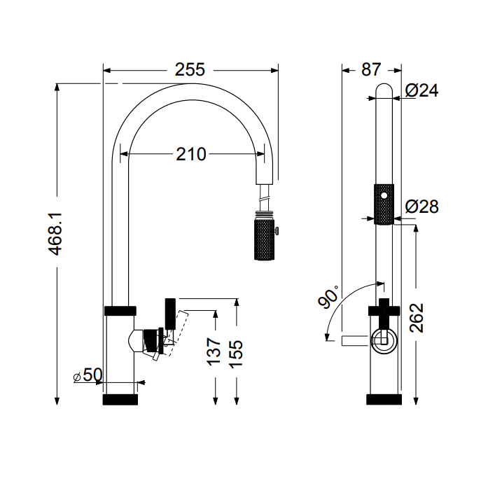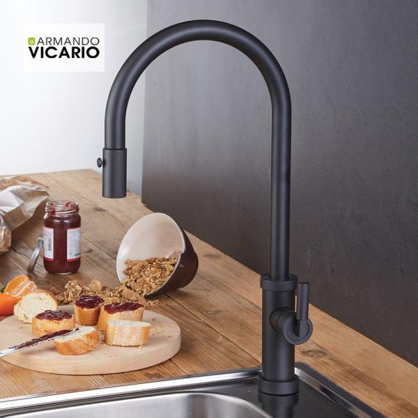 Μπαταρία νεροχύτου θερμομικτική URBAN με περιστρεφόμενο και αποσπώμενο ντους 2 λειτουργιών (shower / spray) και άθραυστο σπιράλ VICARIO Ιταλίας