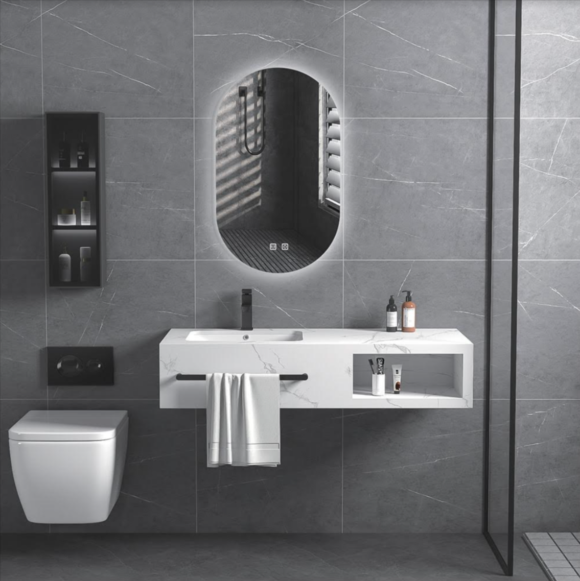 - LED Καθρέφτης: Ντουλάπι με δύο πόρτες και ενα ράφι κάτω για μεγάλη αποθήκευση και οργάνωση όλων των προσωπικών σας αντικειμένων.(Led φωτισμός δεξια και αριστερα)